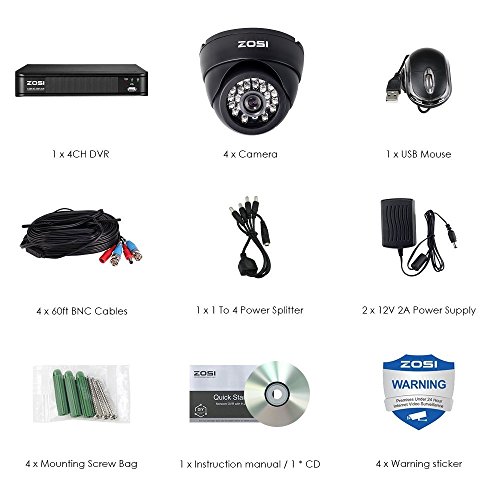 -. Title : ZOSI Surveillance DVR kits, 4-Channel 1080N AHD HDMI 720P Security DVR and 4 x1280P 1.0MP Indoor Dome Security Camera System