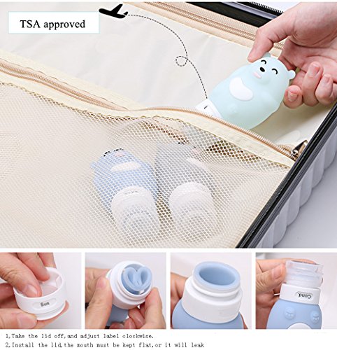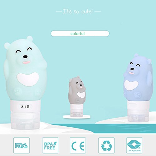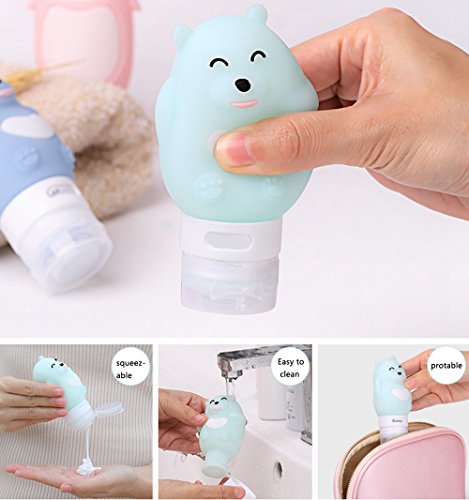 Cute Leak proof Bear Travel Bottles TSA Approved Refillable Squeezable Soft Silicone Travel Sets Cosmetic Toiletry Containers for Shampoo Lotion Soap BPA...