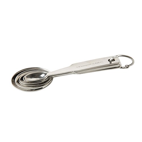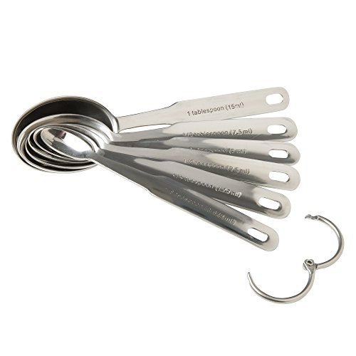 * ELEGANT & ATTRACTIVE QUALITY SET OF 6 STAINLESS STEEL MEASURING SPOONS - 1 and 1/2 TABLE SPOON, 1, 1/2, 1/4, and 1/8 TEA SPOON. 15, 7.5 5, 2.5, 1.25 and 0.625 mls. Easy to read engraved sizes showing both ‘SPOONS’ and 'mls' makes baking a breeze that adds a touch of class to your kitchen instead of plastic.
