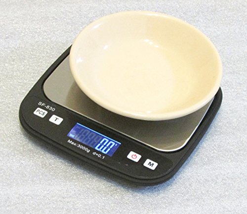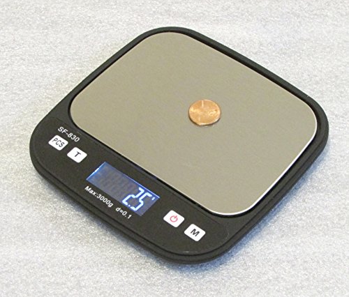 - This 3 kg scale has a durable ABS plastic body, with a sizable dedicated stainless steel weighing platform (5 1/8”x3 ¾”). The clear back-lighted LCD screen enables easy reading. Solid protective cover lets you carry it with peace of mind.