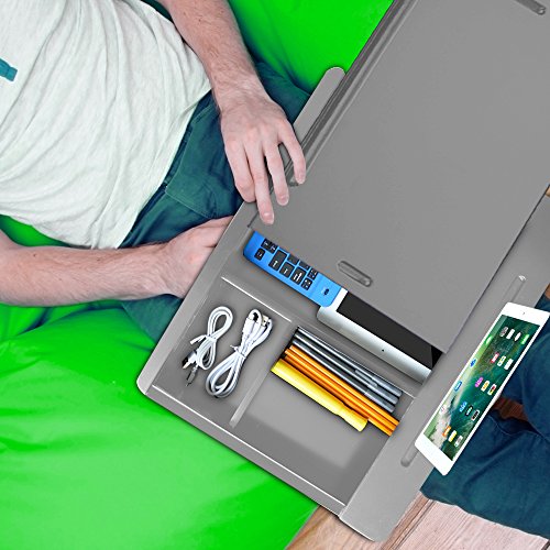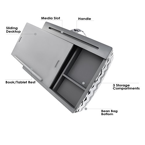-. Title : iCozy Portable Cushion Lap Desk With Storage - Grey Chevron