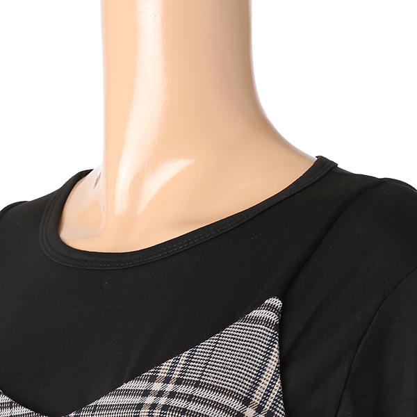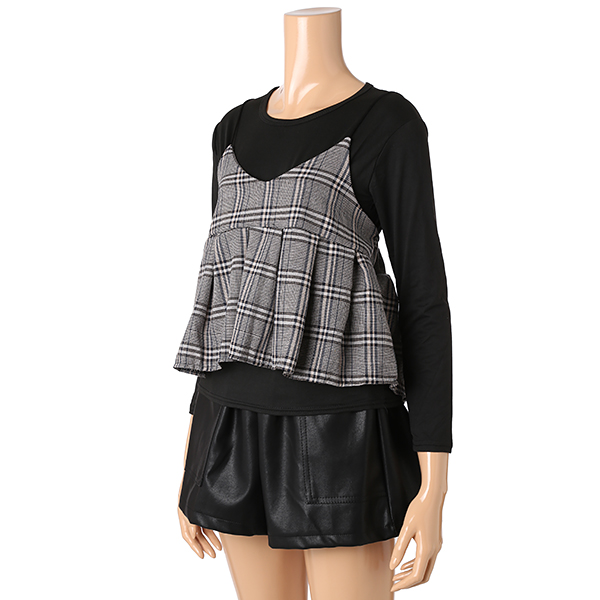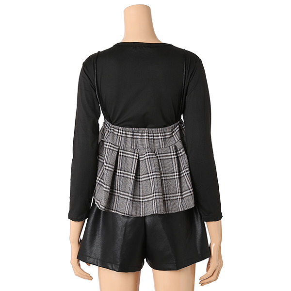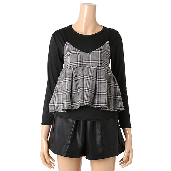 피트한 탑에 고급스런 체크 뷔스티에가 세트인 디자인으로