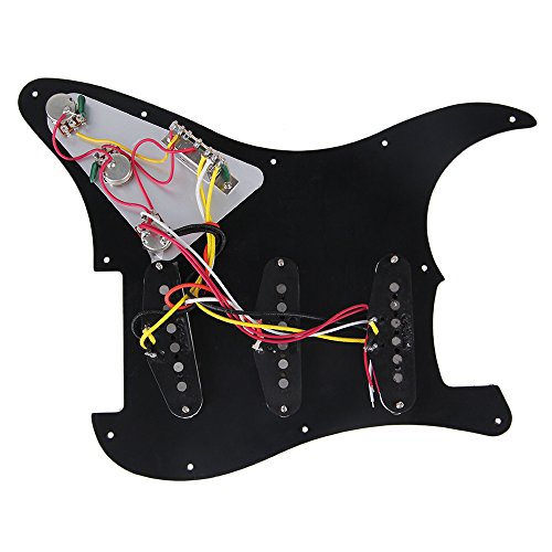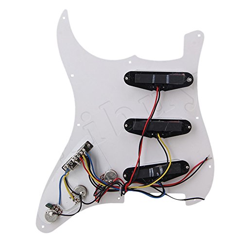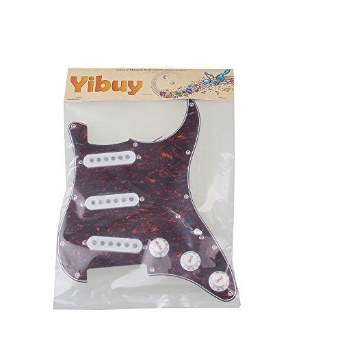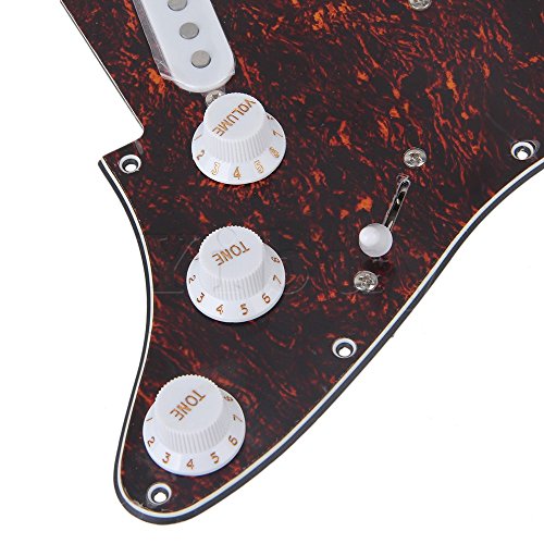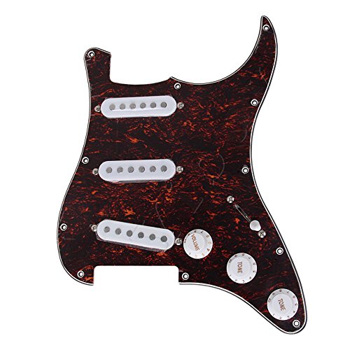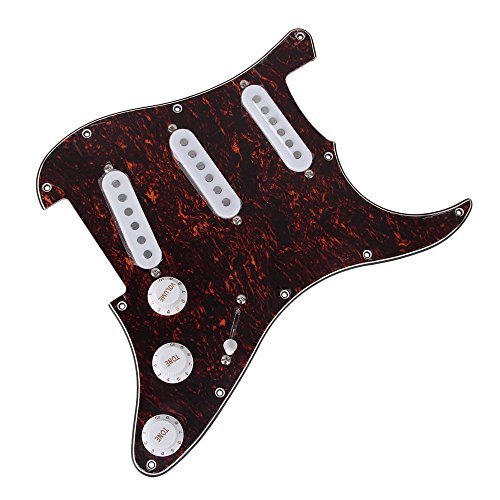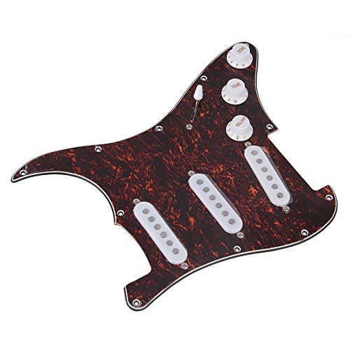 Studio : etfshop Publisher : etfshop Product Description Specification: Material: PVC Metal Color: Brown Tortoise Shell Size: 28.5 x 22.5 cm / 11.22 x 8.86' (L x W) Weight: 325 g Feature: 3PLY ST Style Guitar Pickguard 3-ply Red Loaded Pickguard, 11 screw holes in the side. Prevents scratches and protects the body of the guitar. It fit for Electric Guitar. Package included: 1 x 3-ply PVC Loaded Pickguard 3 x white single pickup 3 x white knob switch 5 x white selector switch