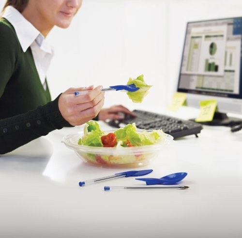 Here are the essential multitasking office tools you have been waiting for; a set of ordinary stick pens that does double duty as handy dining utensils