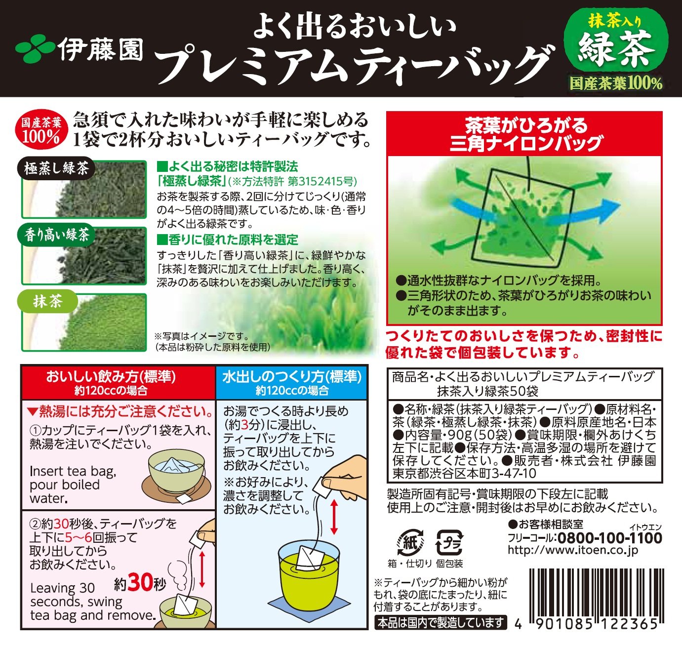 Itoen Ryokucha Green tea Matcha Blend Premium bag Pack of 50