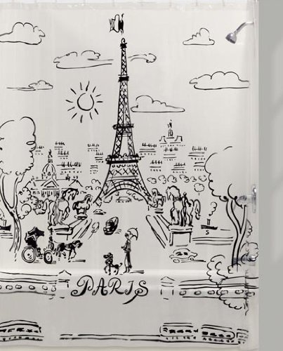 Creative Bath Products Paris Day Black Design on Clear Vinyl Shower Curtain, 72" x 72"