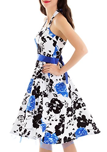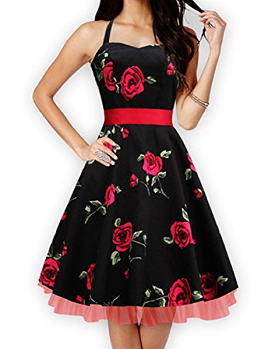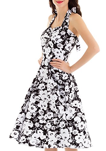 Vintage loves retro Women's 1950's Evening Party Halter Swing Dress / Vintage flower and dot pattern covereds with great stretch for comfort / This retro Audrey Hepburn style halter dress is made with lightweight and soft material