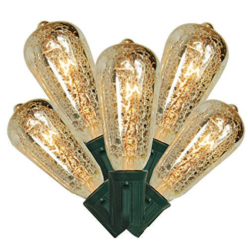 Vickerman Set of 10 Clear Mercury Glass ST40 Edison Style Christmas Lights - Green Wire