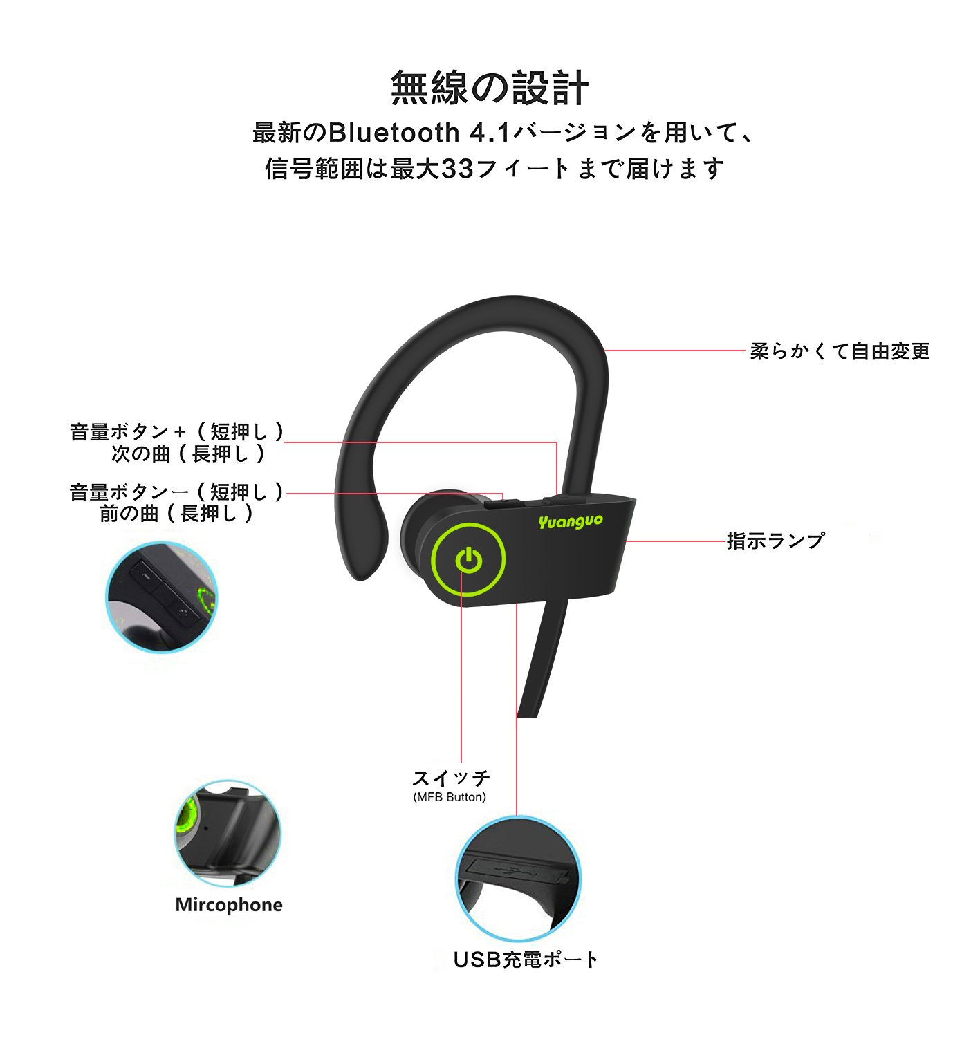 It prevents entanglement of the headphone wire which is troublesome during training, and enjoy a good sports experience.