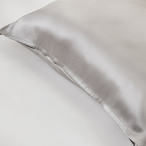 YUNS 100% Pure Mulberry Silk Pillowcase for Hair and Skin Beauty, 19 Momme Silk Both Sides, Envelope Closure, Queen 20x30’’, Silver Gray, 1pc.