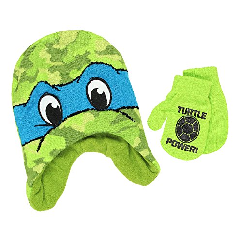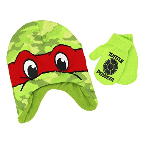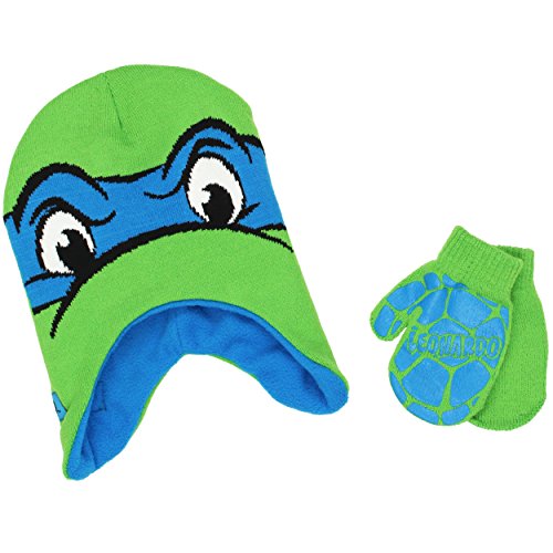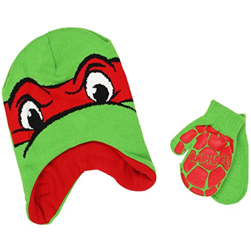 Binding : Apparel Product Description Cowabunga dudes! Keep warm and bundle up with your favorite Nickelodeon characters in these adorable TMNT toddler hat and mittens sets! Choose your favorite style: knit costume style laplander with fleece lining or fully knit style with knit cuff and pom pom on top. All sets include matching mittens and colorful graphics of your favorite Ninja Turtles, Raphael and Leonardo! The perfect choice for any fan of Nick Jr.'s Teenage Mutant Ninja Turtles! Choose your favorite style or collect them all! 0