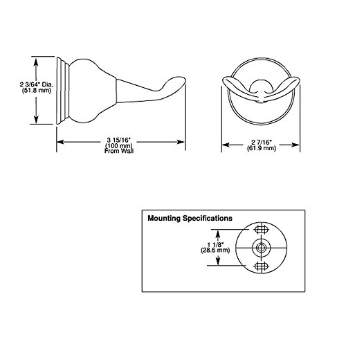 DELTA 74036NC Traditional 3.31" x 2.44" Double Robe Hook Chrome/Pearl Nickel