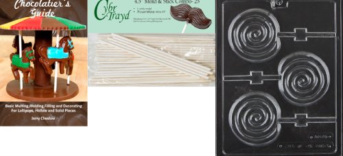 Cybrtrayd 'Swirl Lolly' All Occasions Chocolate Candy Mold with 25 4.5-Inch Lollipop Sticks and Chocolatier's Guide