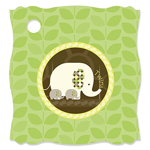 Studio : Big Dot of Happiness, LLC Publisher : Big Dot of Happiness, LLC Binding : Toy Product Description Our Twin Baby Elephants die-cut round card stock baby shower or birthday party favor gift tags come in sets of 20 and arrive ready to be used! Cut in a signature squiggle design, these are not your ordinary party favor gift tags. Simply insert a ribbon in the pre-punched hole and tie to any gift, party favor, and so much more. Perfect for the do-it-yourself crafter or as the final touch to a pre-purchased party favor, these die cut tags will add the adorable touch you've been seeking for any celebration! Measuring 1 3/4 inches in diameter, they are printed on a high quality satin card stock paper. The design will pop with a photo like finish. Get ready to wow your friends, family and guests when you add that extra little touch with our die-cut card stock tags! 0