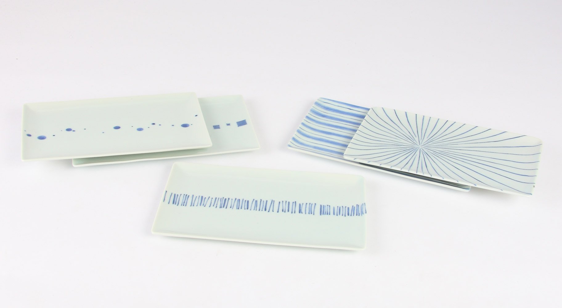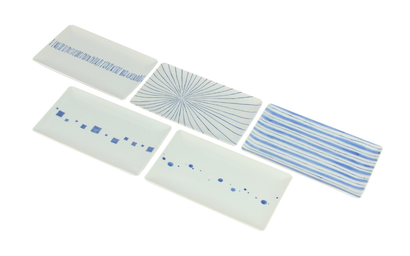 Saikaitoki dyed with geometric Mon pottery dish assortment 14141
