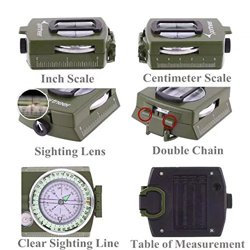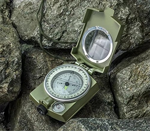Whether you are trekking through those rugged plains, or trying to find that lookout point with a gorgeous view, it¡?s always nice to have a fellow adventure buddy who always knows where they are going. And here, we want to be that companion. Our Military Grade Compass- your tough, burly compass-friend who will always point you back to the right direction. It navigates, orientates positions, measures slopes, angles and scales and locates direction ¨C like the friend who always adopts the backseat driver role - just without the pompous nagging. A Compass That¡?s Built To Last They say you can¡?t choose your family, but you can choose your friends. And your gadgets. So of course,you¡?d want only the best. And with military construction? You will be getting the best. If crafting this navigation compass with high quality, b engineering metal isn¡?t enough, we¡?ve also equipped with a rugged metal casing, and made it waterproof and shakeproof ¨C so you can always rely on us. Specifications: -Item Size: 3.3'x2.5'x1' -Item Weight: 0.39 lbs -Package Dimensions: 4.3'x3.2'x1.5' -Package Weight: 0.47lbs Package contents: -1x Lensatic Sighting Compass -1x Pouch -1x Lanyard -1x User Manual 0