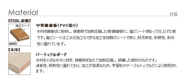 ●材質:本体-プリント紙化粧パーティクルボード(木目タイプ)、前板-合成樹脂化粧繊維板