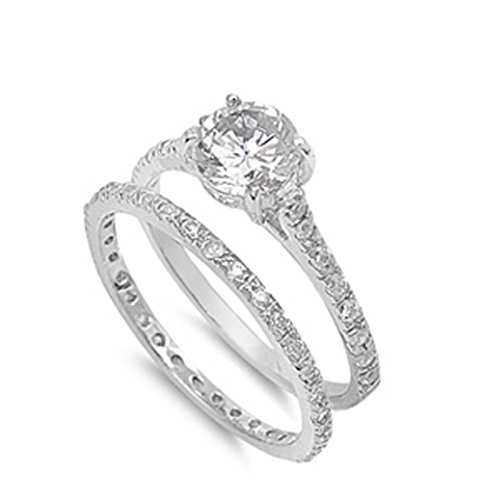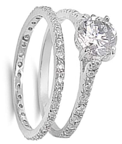 -. Title : Sterling Silver Designer Engagement Ring & Eternity Wedding Band 925 Sizes 4-11
