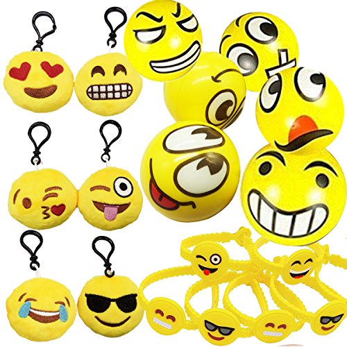 18pcs Emoji Gift Toy, Keychain Wristband Squeeze Stress Relief Ball, Kids Party Supplies Favors
