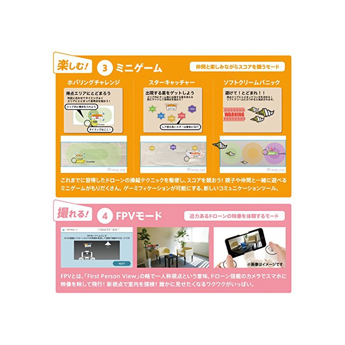 【기체 사양】대상 연령:15세 이상/옥내 전용/비행 시간:4~5분/충전 시간:20~30분/조작 거리:대강 25m/조종 모드:모드1.2대응,200g미만 (이므로)그래서 등록 신청 불요,기적취득필,카메라 부착,FPV가능,Wi-Fi접속
