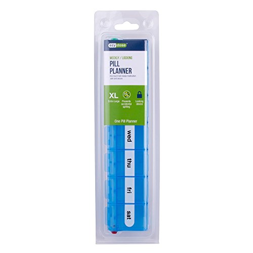 ReleaseDate : 2015-07-25 Studio : Apothecary Products, Inc. Publisher : Apothecary Products, Inc. Binding : Health and Beauty Product Description Ezy Dose Premium Locking Weekly Pill Planner - 7-Day Secure Pill Planner. This Child-Proof Weekly Pill Reminder is Perfect for Scheduling Your Week's Medication. Its clearly labeled compartments are simple to use and help you keep track of your medication through the week this large 7-Day locking pill planner is designed for easy use, safety and security. Its lockable compartments are child deterrent and make sure your medication stays out of the wrong hands . The compartments are clearly labeled and their bottoms are contoured so that retrieving your medication is simple. The main features of the Secure 7-Day Pill Planner include: Bold Labeling - Each day's compartment is labeled in large font, Secure Lids - Child Deterrent lids are secure and keep your medication out of the wrong hands, Large Compartments - Each compartment can fit most daily medications. Green and red button shows if the planner is locked or unlocked. About Ezy Dose: Ezy Dose is the leader in easy-to-use medication management products. Many of our push-button pill planners are endorsed by the Arthritis Foundation for our ease-of-use design. Ezy Dose products make living healthier simply easier with products like pill cutters, pill crushers and a full line of easy-fill planners. 0