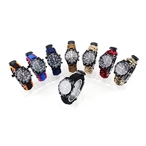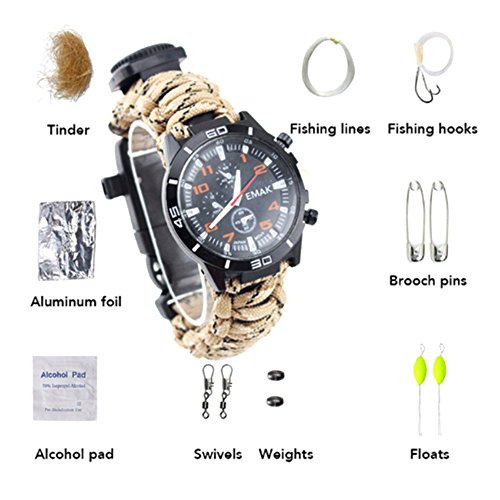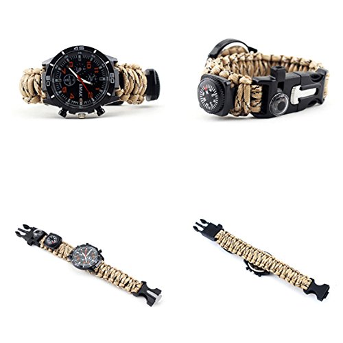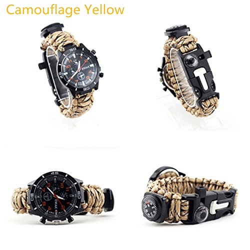 1Pcs Camping Watch 16 In 1 Multifunctional 9'' Camouflage Yellow Paracord Bracelet Sahara Sailor Outdoor Survival Kit W Compass Flint Fire Starter Scraper Whistle For Hiking Camping Emergency More