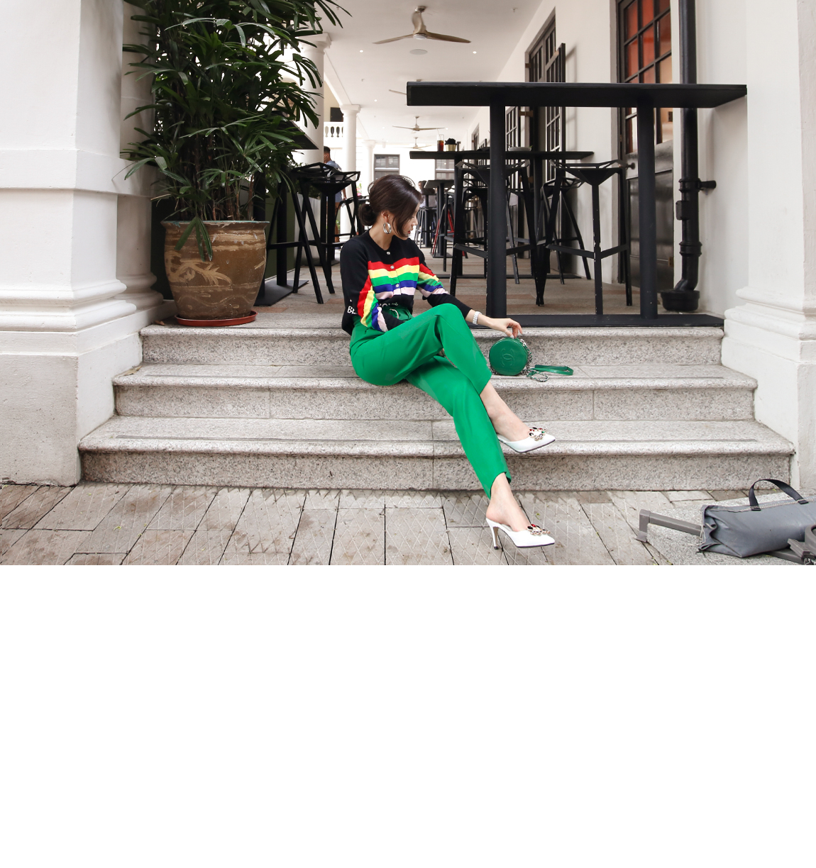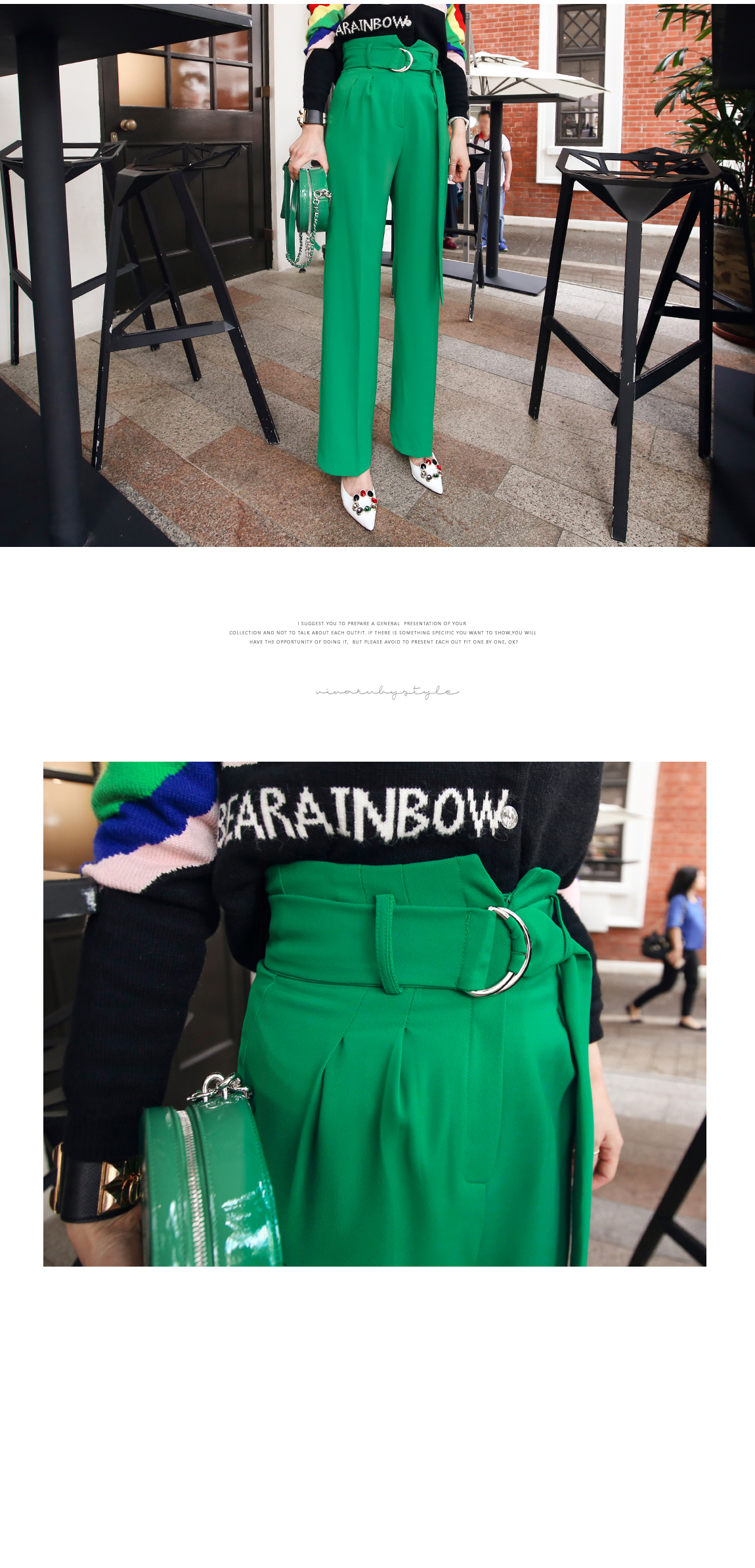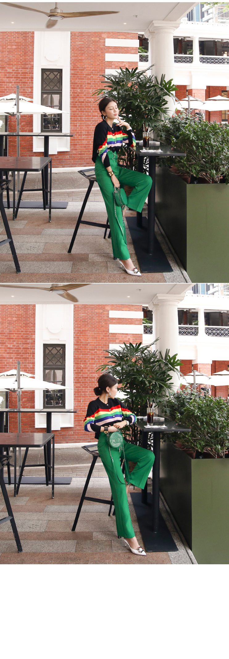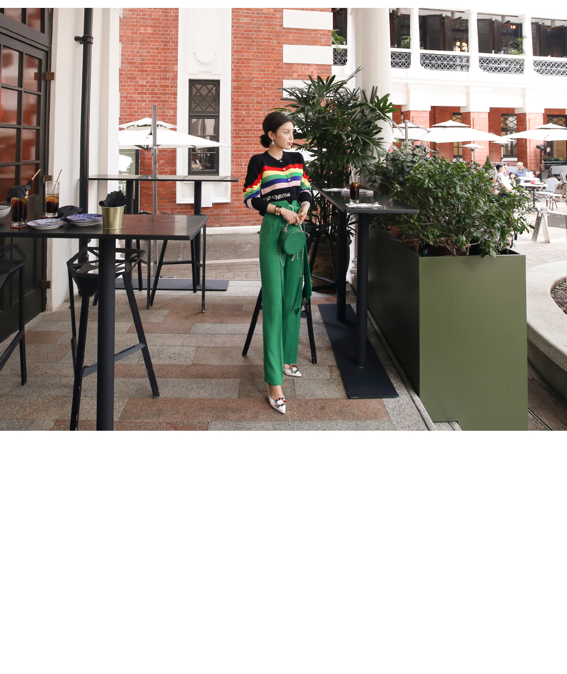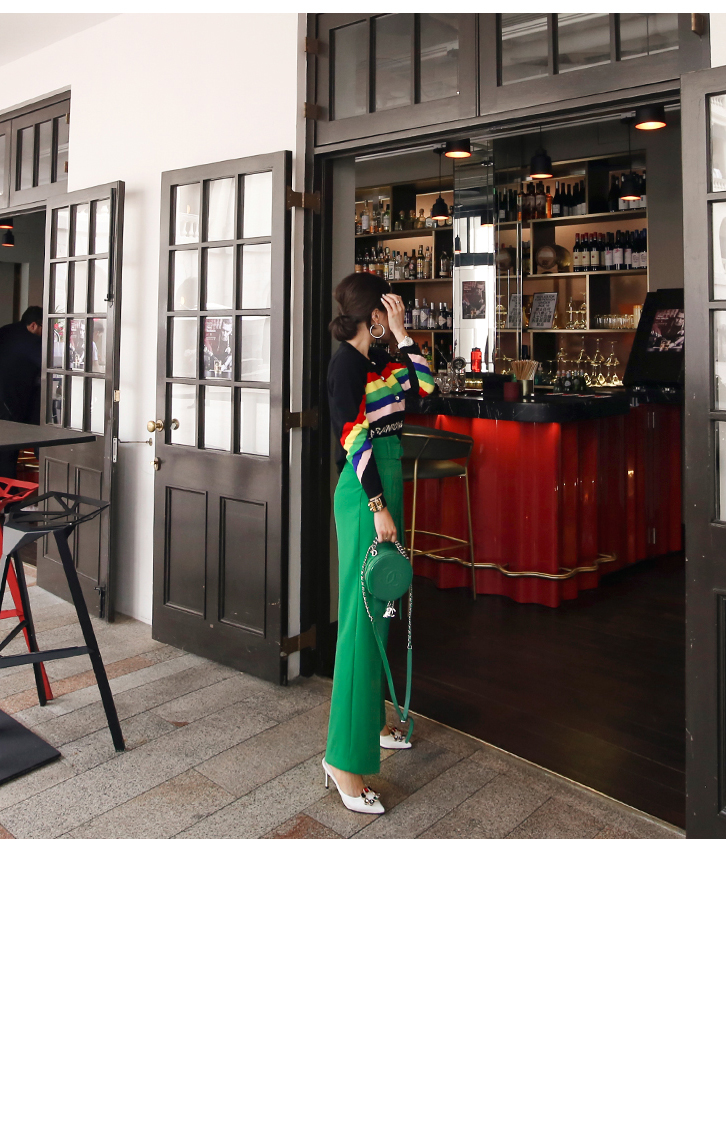 のようなカラー感のボトムスとトレンディなマッチさ
