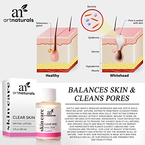 Say goodbye to age spots, sun spots, blemishes, and acne with our drying lotion's natural blend of plant extracts and soft emollients. Clear your pores of dirt and oil while exfoliating and peeling dead skin cells that contribute to blemishes, acne, and wrinkles. Art naturals exclusive formula is gentle on all skin types and sets to work instantly absorbing into your skin on contact. Say goodbye to messy, greasy lotions and balms and treat you skin to gentle hydration and natural exfoliation. Use daily for treating and aiding factors that lead to acne, psoriasis, blemishes, age spots, sun spots and more. Your satisfaction is what drives us to provide the highest quality all natural and organic health and beauty products on the market. Building relationships of trust with those committed to an organic and natural lifestyle is what we do. If at any time you have ideas about how we can do it better, we would love to hear from you. Our ingredients are always clearly labeled and 100% thorough and truthful. Our love of beauty stretches beyond humanity and strives to see the wonder in all of nature. That is why our packaging is made with Bpa-free materials and all of our products are paraben-free and cruelty-free.Feature