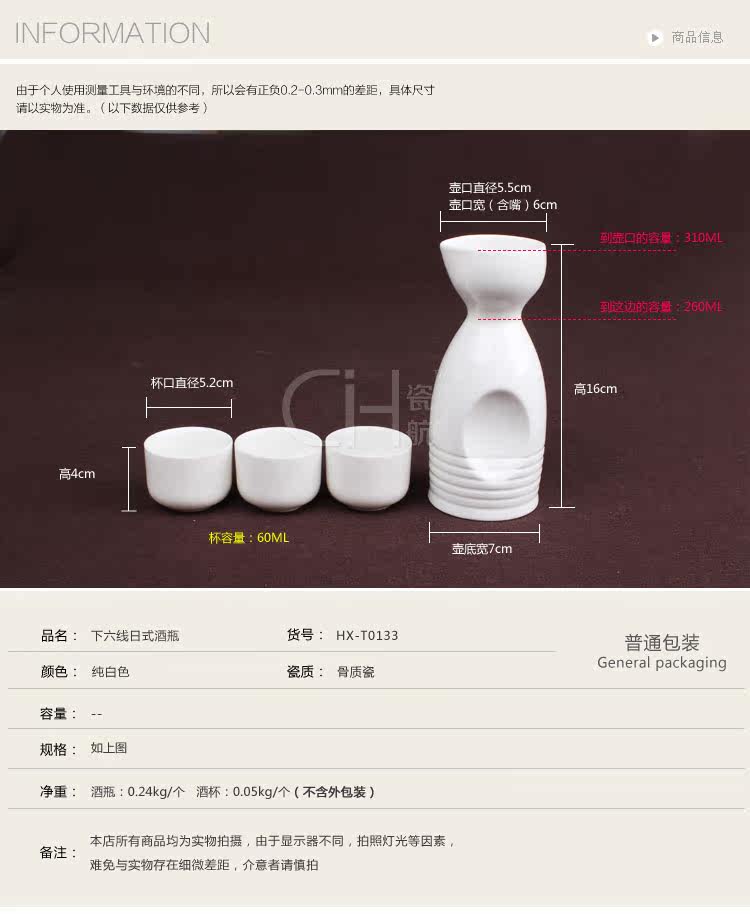 瓷航下六线日式酒瓶配清酒杯陶瓷套装礼品小酒壶一壶四杯