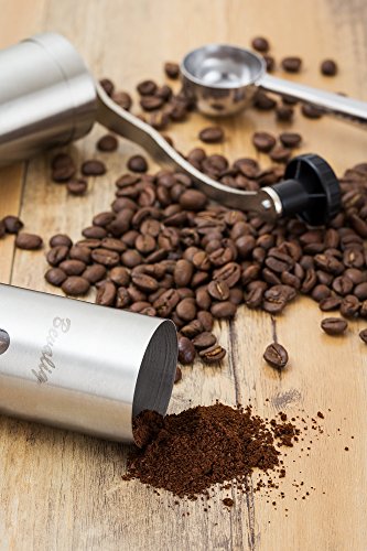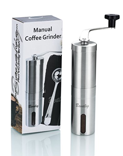 -. Title : Manual Coffee Grinder with Travel Pouch, Spoon and Cleaning Brush - Premium Ceramic Conical Burr Stainless Steel Hand Crank Mill - Enjoy Precise Consistent Freshly Ground Coffee Espresso