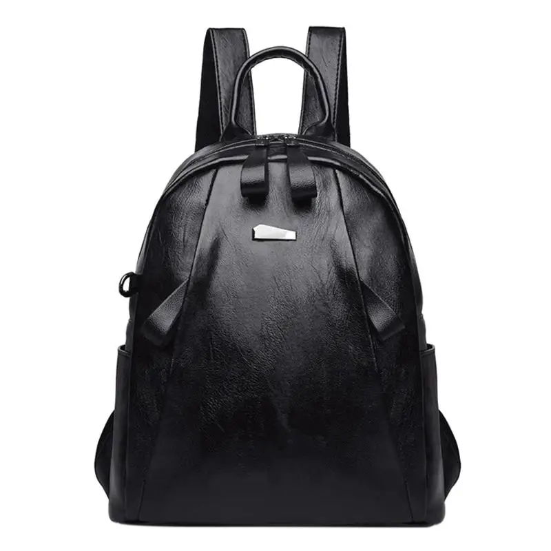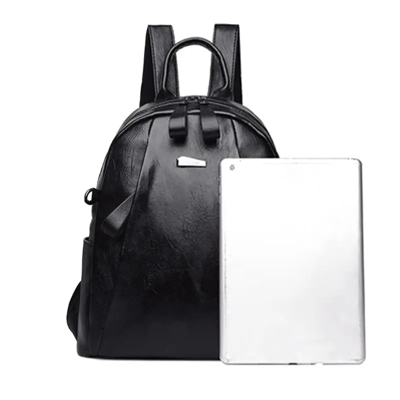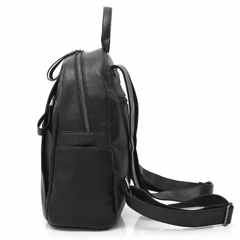Women Zipper PU Leather Shoulder Bag for Teenagers Students School Daypack Backpack