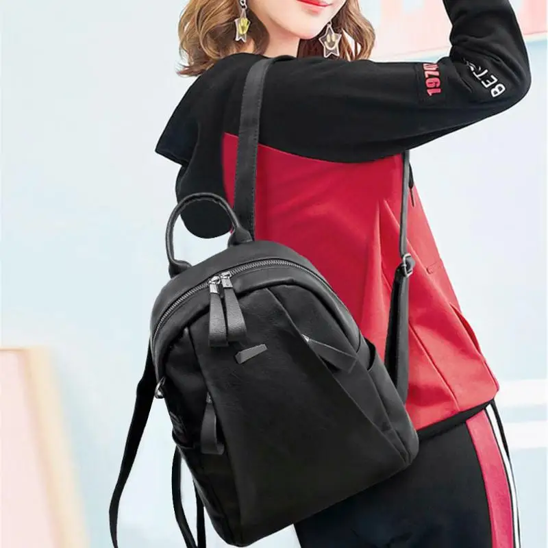 Fashion Women Zipper PU Shoulder Bag Teenagers Girls College Daypack Backpacks