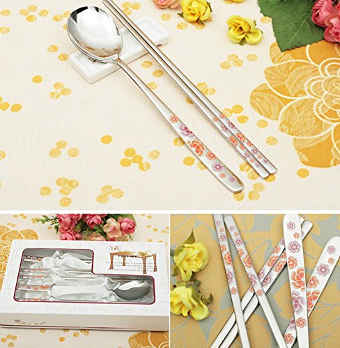 -. Brand : Table Art -. Feature : Spoon and Chopsticks set / Spoon Length : 210mm(8.3")/Chopstics Length: 215mm(8.5") / Made in korea -. Label : Table art -. Manufacturer : Table art -. Model : Table art -. ProductGroup : Kitchen -. ProductTypeName : KITCHEN -. Publisher : Table art -. Studio : Table art -. Title : Table art Korean Stainless Steel Spoons and Chopsticks Flower Pattern, set of 2