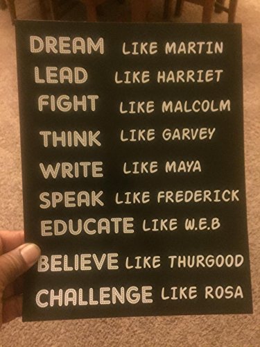 8.5x11 Poster Dream Like Martin Lead like Harriet Fight Like Malcolm Write Like Maya Build Like Madam CJ Speak Like Federick Educate Like W E B Challenge Like ROSA