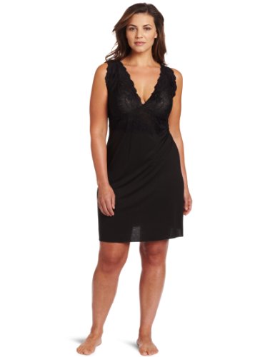 Natori Women's Plus-Size Zen Floral Chemise Nightgown, Black, 2X