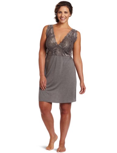 Natori Women's Plus-Size Zen Floral Chemise Nightgown, Gray, 1X