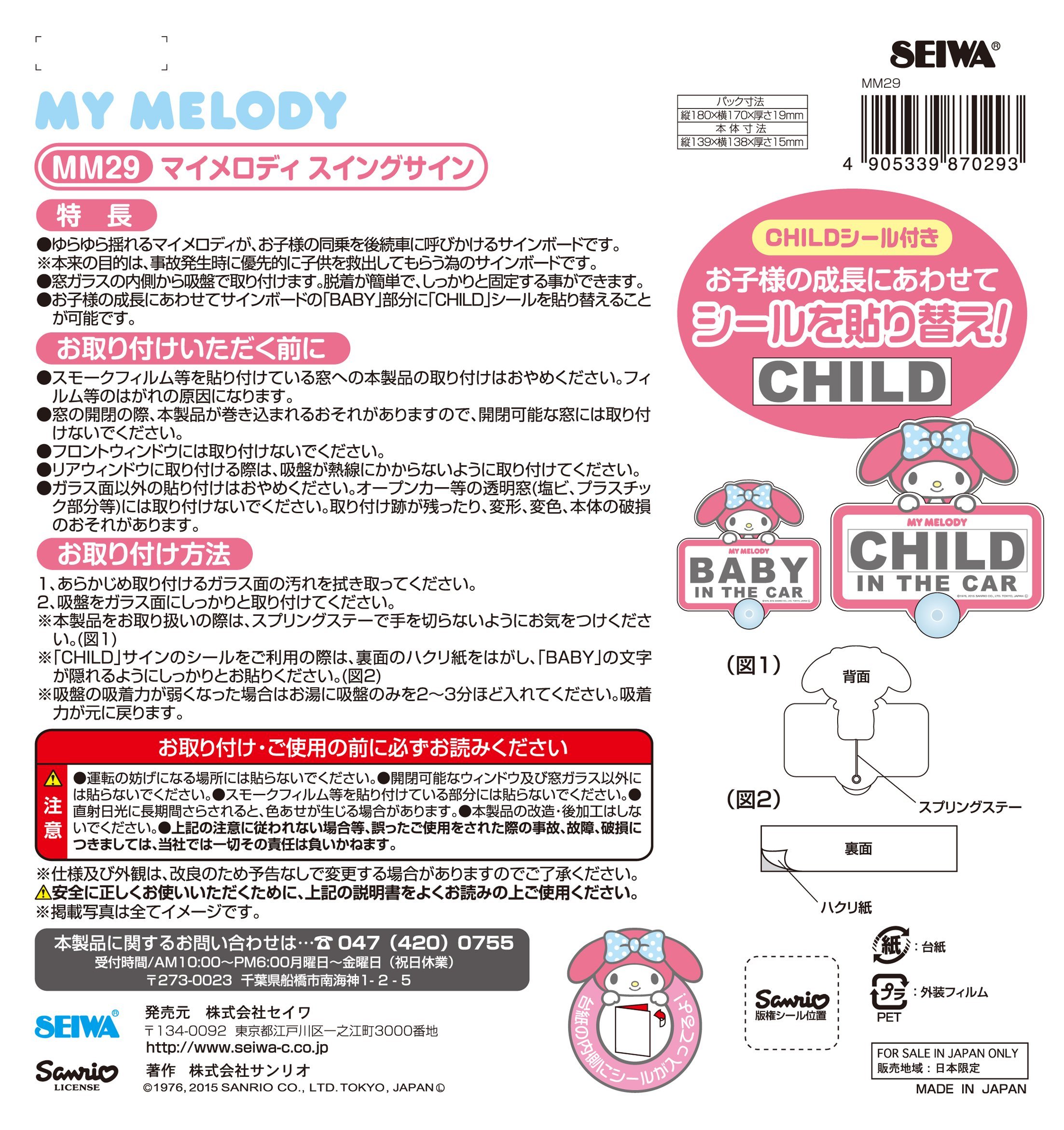 Seiwa My Melody swing sign die cut MM29
