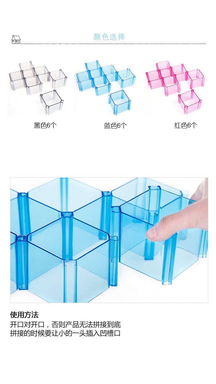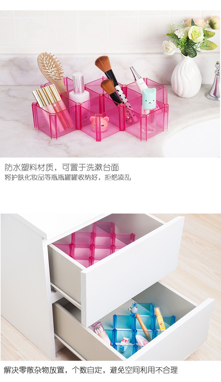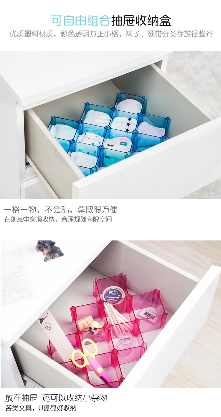 自由组合蜂巢式抽屉整理隔板 内衣袜子塑料分格收纳盒 六个装