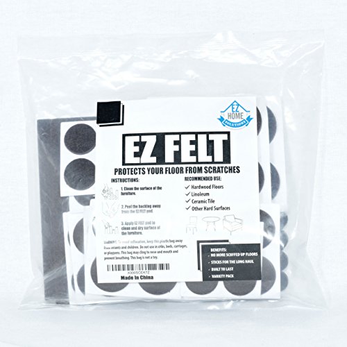 - Feature : EZ FELT pads; protect wooden, tiled or laminate flooring from furniture scratches and scuffs! / VARIETY PACK; multiple sized furniture pads, perfect for use on chair legs or metallic furniture. / LOW PROFILE; thin yet tough felt chair pads that subtly fits under your furniture's legs. / TOUGH ADHESIVE; premium floor protectors won't slip or slide when dragged. / TRY IT RISK FREE; our felt chair pads are backed by a lifetime manufacturer's quality guarantee!