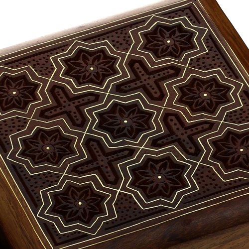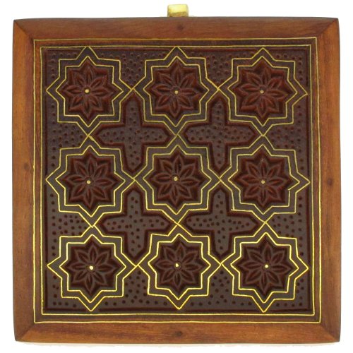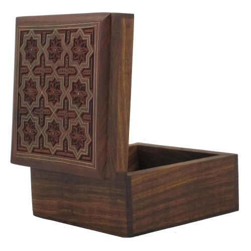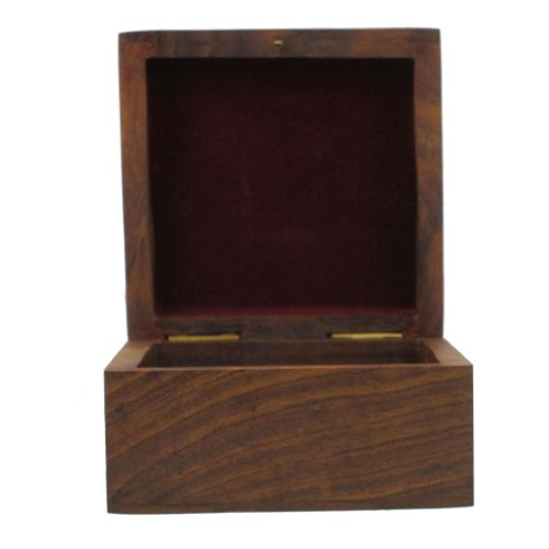 - Feature : Wooden jewelry box from India / Size: Length - 4 inches, Width - 4 inches, Height - 2.25 inches. / Handcrafted and hand carving work. / Made by artisans of Saharanpur famous for wood carving. / Used for protecting and preserving Jewelry Indian way.