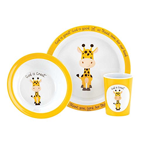 (Dicksons)/Kitchen Dining/Tableware/DIRECT FROM USA/Cute Giraffe God Is Great Yellow 9.5 x 9 Melamine Plate, Bowl and Cup Set of 3