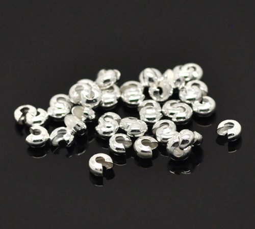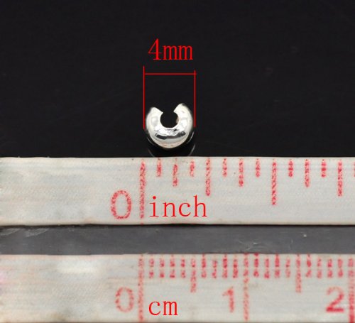 200pc Silver Plated Crimp Beads Covers Findings 4mm(1/8") Jewelry Making Supp...
