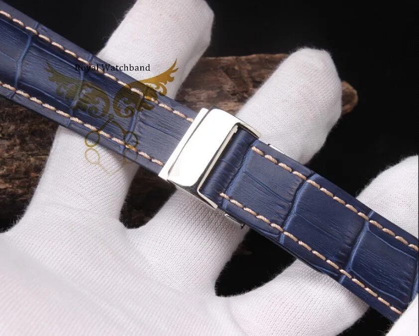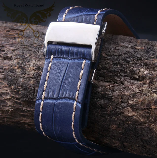| [해외]새로운 청이 시계 밴드 22 미리메터 24 미리메터 악어 패턴 정품 가죽 시계 스트랩 실버 광택 배포 걸쇠 버클 |