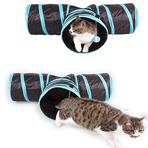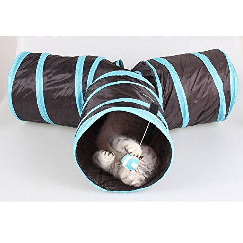 Best Ways to Play: With 3-way pet tunnels, built-in crinkle crackle paper, peephole & toy ball, this popular tunnel chute gives your kitty more ways to have fun. Pets will love playing in this tunnel, running back and forth, exploring. Not only having their own hiding place but also shade from the sun.