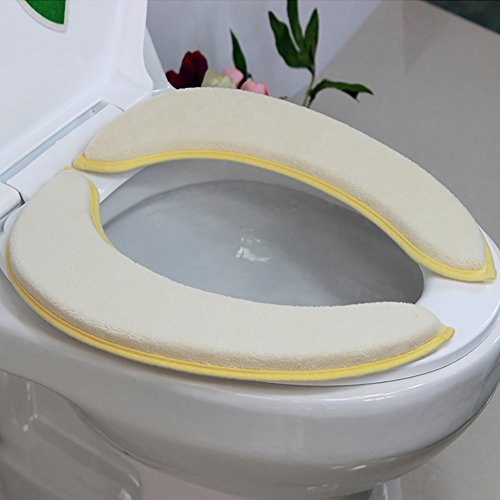 saounisi Soft Warm Individually Wrapped Washable Reusable Toilet Seat Cloth Coral Velvet Cushion Pads Cover Solid Color Beige 1 Set