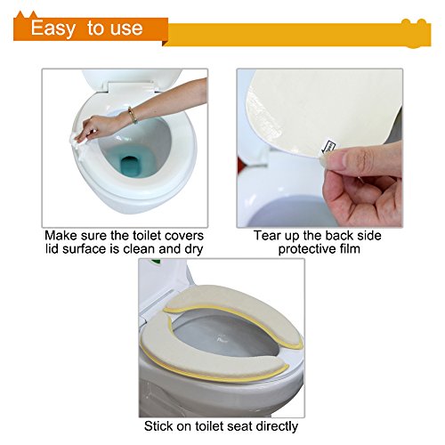 ELECTROSTATIC ADSORPTION AND REPEATED USE WITHOUT TRACES: Tear up the protective film on the back side of the toilet seat cover, and stick it on the toilet seat directly to protect your toilet seat. Once you have used our soft toilet seat cover, you will never want to sit on the bare toilet seat again!