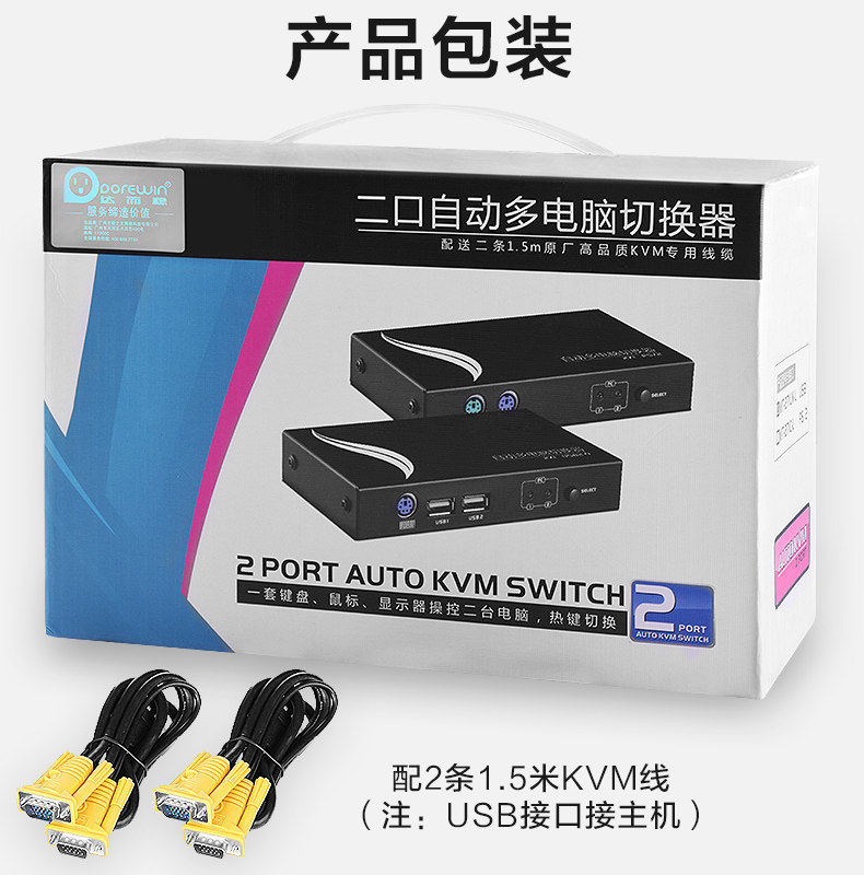 ? ? ? ? ? ? ? ? ? ? ? 2.赠送的2条1.5米KVM线,有USB接口的那端连接主机;