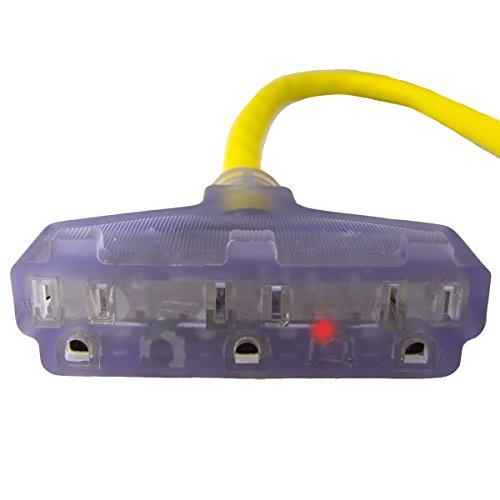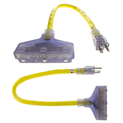 2 Pack Prime Lighted 2ft Triple Tap Adapter Extension Cord 3-Prong Outlet Splitter