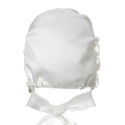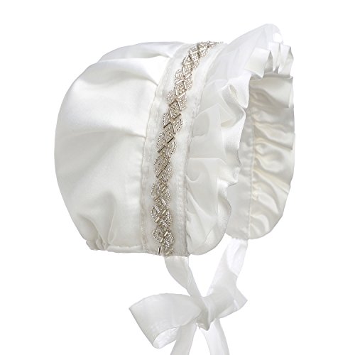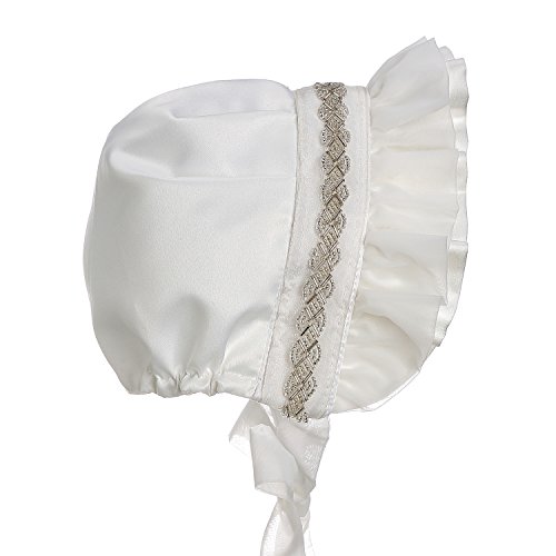 Binding : Apparel Product Description A bonnet is any of a wide variety of headgear for both sexes-most often female-from the Middle Ages to the present.As worn by women and girls,bonnets were hats worn outdoors which were secured by tying under the chin, and often which had some kind of peak or visor,took the place of protection from sun,prevent wind-chapping,hold the hair in place, protect styled hair or keep it tidy,the term has long been popular in both civilian life and in the Royal Regiment . Baby Bonnets are a time old tradition that carries into present day because of their elegance and functionality. They're offered in small to large sizes then tie at the chin with two silk ribbons for a more secure and comfortable fit. Carry the tradition in your family with a bonnet from Hanakimi you can't find anywhere else. For parties and photos, choose from baby girl bonnets for the perfect accessory to accent wisps and curls. Lace, netting, beads and bows add just the right touch to these handmade bonnets. XXS/Newborn Fit for 0-3 Months, XS/3M Fit for 3-6 Months, S/6M Fit for 6-12 Months, M/12M Fit for 12-24 Months, L/24M Fit for 24-36 Months, XL/36M Fit for 36-48 Months. 0