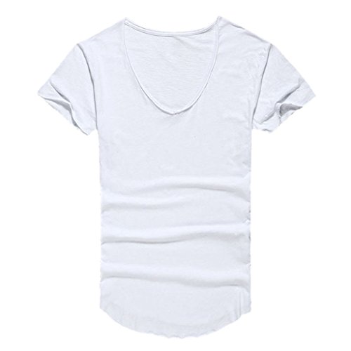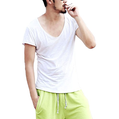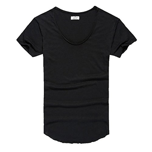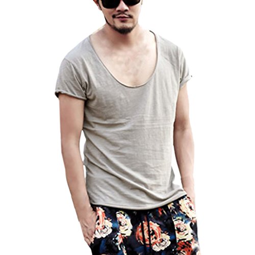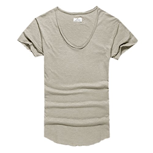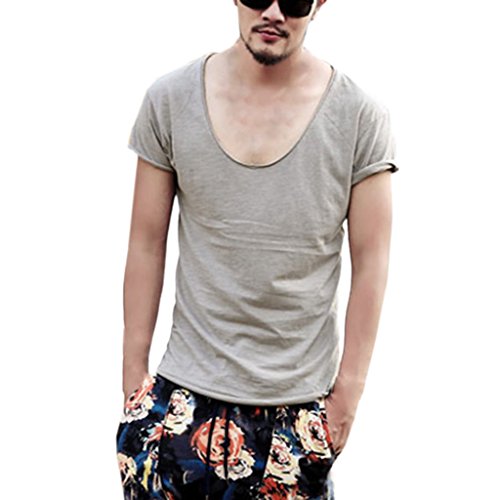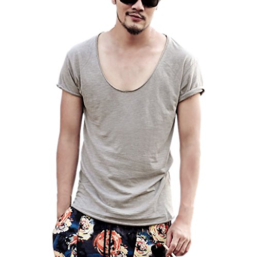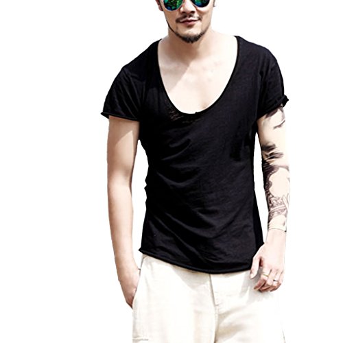 -. Binding : Apparel -. Brand : Zbrandy -. Department : mens -. Feature : Supersoft Fabric / Deep V Neck / Cut Off Border / Scoop Hem / Slim Fit -. ProductGroup : Apparel -. ProductTypeName : SHIRT -. Title : Zbrandy Men's Deep V Neck Fitted Sexy T Shirts Embellished Scoop Hem Cut Off Border